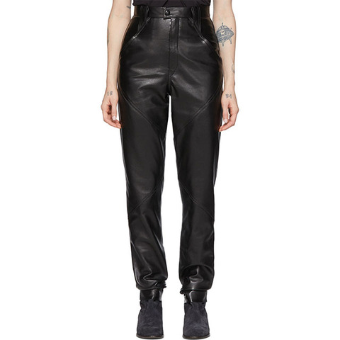 Yüksek kaliteli özelleştirilebilir kadın nefes deri pantolon sıska Fit PU kumaş OEM hizmetleri yapılmış üst tasarım ile mevcut