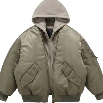 Yüksek kalite özelleştirilmiş siyah Polyester/pamuk bombacı ceket erkekler boy kapşonlu yarış işlemeli Vintage rahat çevre dostu